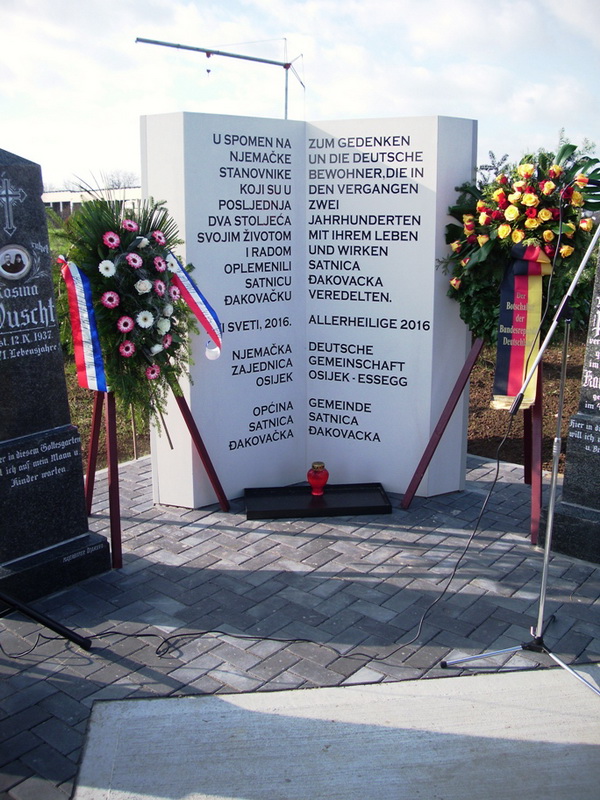 Danas, 13. studenoga, 2016. godine je na mjesnom groblju u Satnici Đakovačkoj nakon dužih priprema otvoreno spomen obilježje koje govori o nepomućenom suživotu Podunavskih Šavaba i mjesnog stanovništva koji se odvijao u posljednja dva stoljeća.