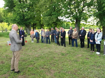 Ovaj puta vjerski dio obreda vodio je gorjanski župnik vlč. Krešimir Bulat. Potom je riječ uzeo gosp. Vladimir Ham, predsjednik Njemačke zajednice. Osvrnuo se na stradanja Nijemaca, zatvorenika logora, kao i na sve ostale žrtve totalitarnih režima, te naglasio kako se to više nikada ne smije ponoviti.