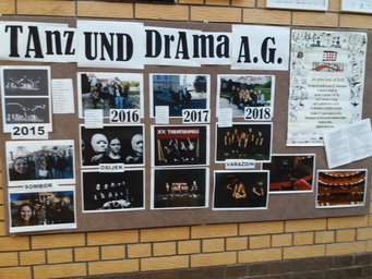 Unazad 5 godina zahvaljujući profesoricama Tanji Schleis i Silviji Profusek, učenici đakovačke Gimnazije su aktivni i zapaženi sudionici kazališnih festivala na njemačkom jeziku, koji se održavaju u Osijeku, Varaždinu i Somboru, o čemu govori i treći, dojmljiv i vrlo lijepo uređeni pano.