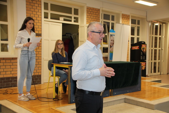 Tu su nas dočekali učenici i ravnatelj Gimnazije AG Matoš, gosp Zlatko Mrkić. Poželio nam je dobrodošlicu i uspješan tijek predviđenog programa.